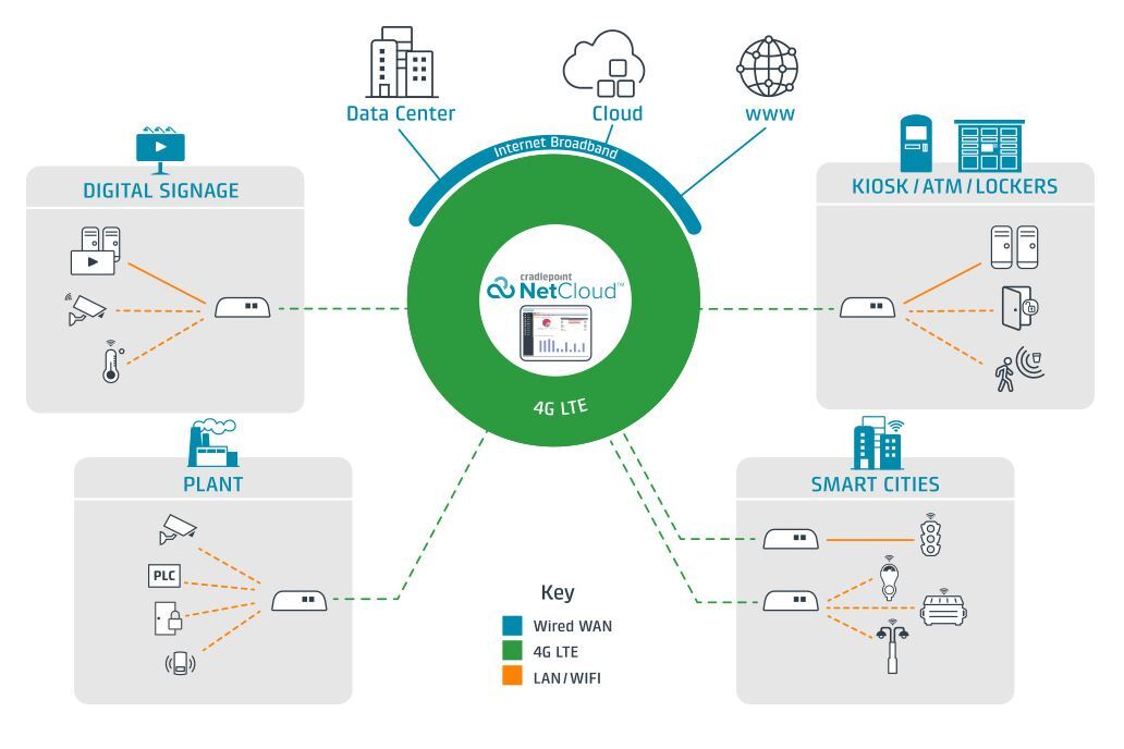 Ericsson Cradlepoint’s Elastic EdgeSM vision provides a blueprint for next-generation IoT networks that deliver pervasive wireless connectivity, cloud-like scale and agility, and edge extensibility — together with the visibility, security, and control that IT requires. All-inclusive NetCloud Solution Packages for IoT Networks, based on Ericsson Cradlepoint’s industry-leading 4G LTE routers, are flexible, and include cloud-based management.