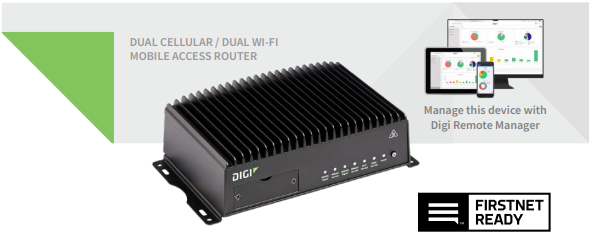 Digi TX54 is available with dual Wi-Fi radios to segment passenger Wi-Fi from fare collection, data, video and other applications, and offers models with both single and dual LTE-Advanced or LTE-Advanced Pro cellular modules.