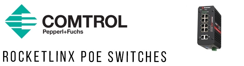 RocketLinx PoE DIN Rail Unmanaged Switches and PoE DIN Rail Managed Switches.